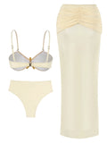 2025 Summer 3 Piece Bikini Sets Strapless Bikini Top With Half Long Skirt